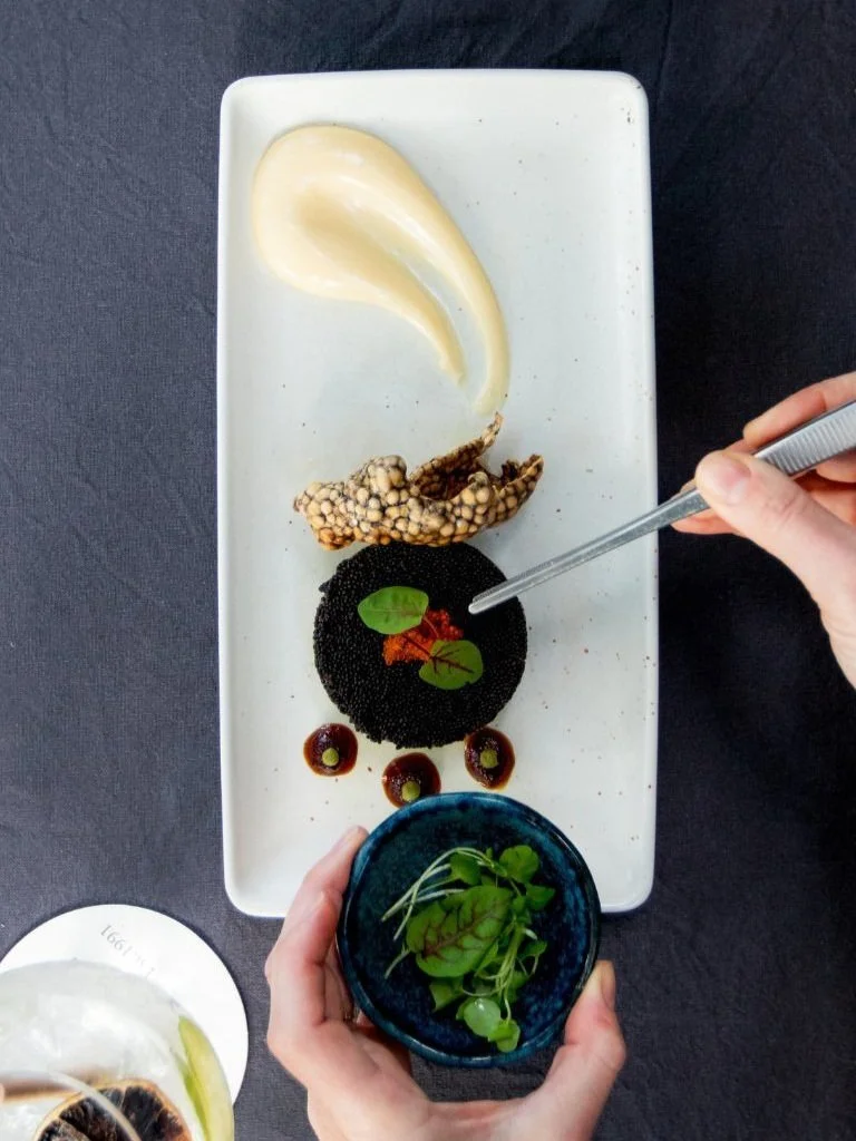 Dashi and thyme braised celeriac, Snowy’s, Native Flavours or Fins Earthy way GF VR 48